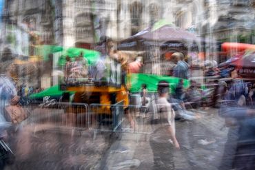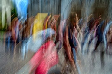 I love to travel to foreign countries. Seeing everything for the first time. I usually shoot quickly and spontaneously, responding to colors, groups of people and the chaotic criss-crossing lines in architecture around me. It's all a whirlwind of emotion and movement I try to capture in my photographs.